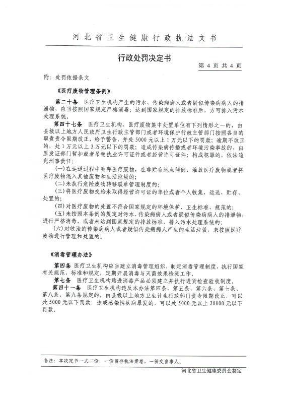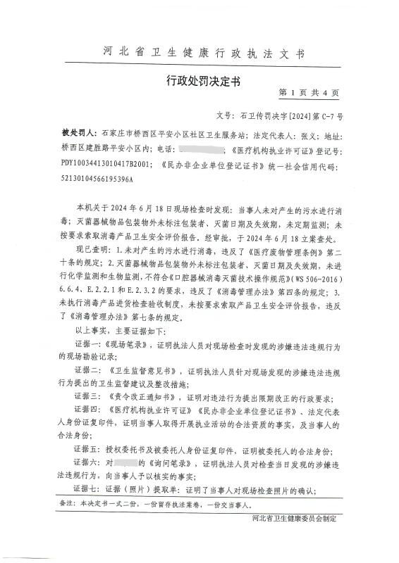 石家庄市桥西区平安小区社区卫生服务站未按规定对污水进行消毒案