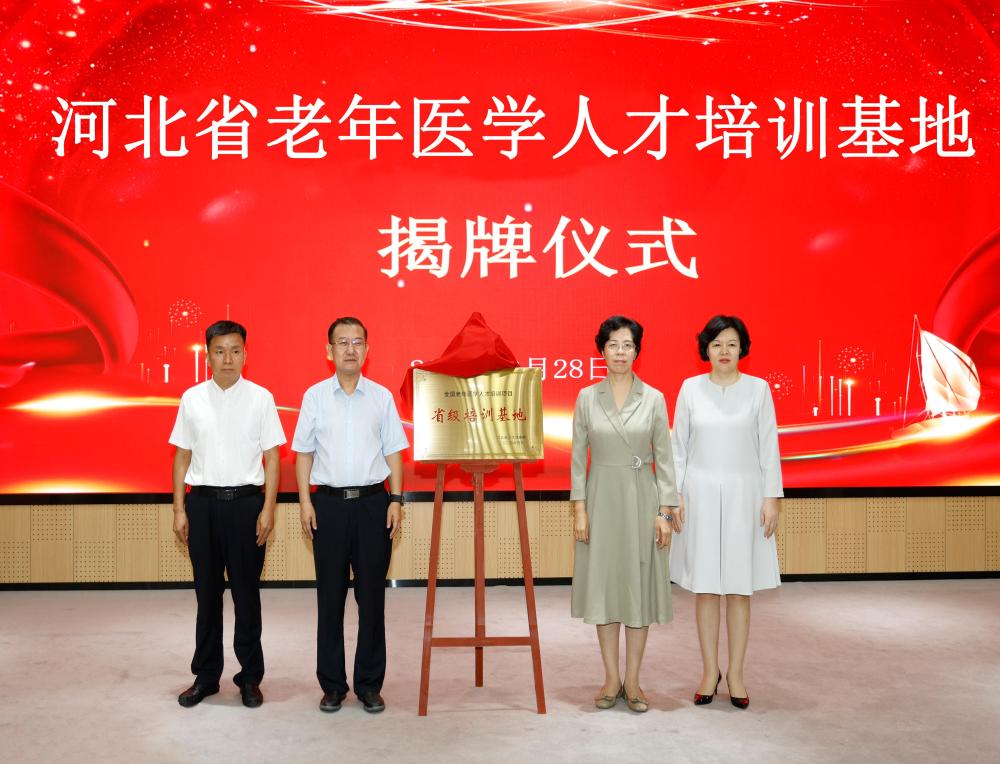 8月28日,全国老年医学人才培训项目省级培训基地揭牌暨河北省老年医学人才培训班开班仪式在石家庄市人民医院举行。河北省卫生健康委二级巡视员范素文,石家庄市卫生健康委党组书记、主任崔芸,河北省卫生健康委老龄健康处二级调研员程定南,石家庄市卫生健康委三级调研员程军良,石家庄市人民医院党委书记曹琴英及医院部分领导班子成员,相关科室人员,培训带教老师及学员参加。范素文巡视员、崔芸主任、程定南调研员、曹琴英书记共同为全国老年医学人才培训项目省级培训基地揭牌。