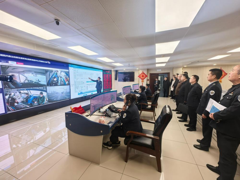 调研组一行在120急救专线通讯指挥调度中心现场观摩石家庄市院前急救指挥调度一体化系统运行情况,观看“1+3+7”石时急救智慧信息系统精准高效处置院前急救事件全流程,直观感受“呼救即急救、上车即入院”的高效救治模式和“院前转运+院内准备”同步推进的并联模式。