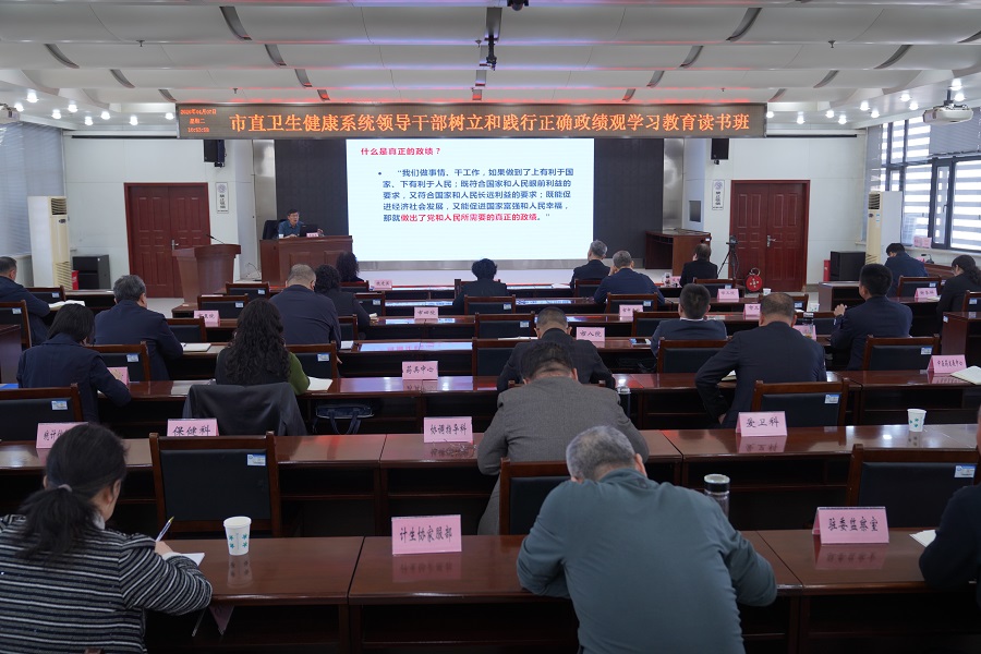 4月7日至8日,石家庄市卫生健康委举办市直卫生健康系统领导干部树立和践行正确政绩观学习教育读书班。本次读书班为期两天,通过集中学习、专题辅导、交流研讨、观看警示教育片等形式,推动正确政绩观入脑入心、落地生根。市卫生健康委党组书记、主任许尽晖作辅导报告。